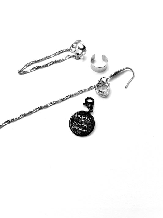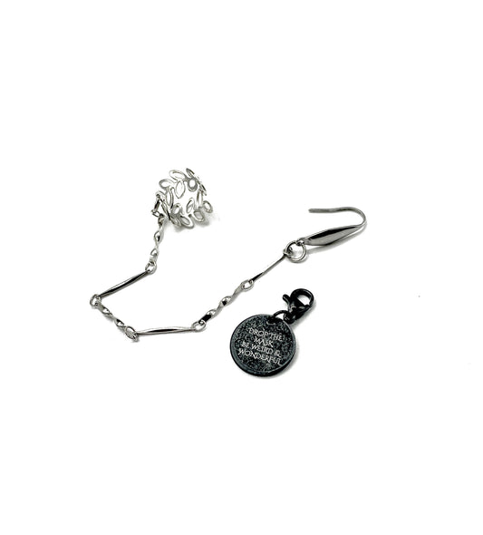 'Abnormal' Ear Cuff/ Beaded Single Earring Set - Silver