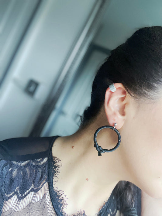 'Horror' Ear Cuff/Hoop Single Earring Set- Silver/Black