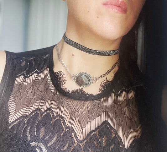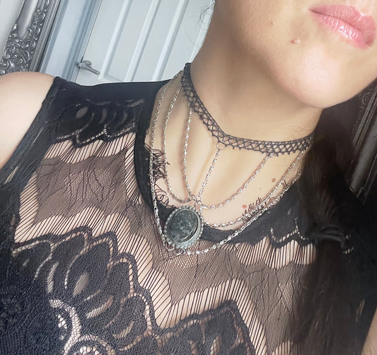 'Live' Necklace Stack With Black Chalcedony - Silver/Black