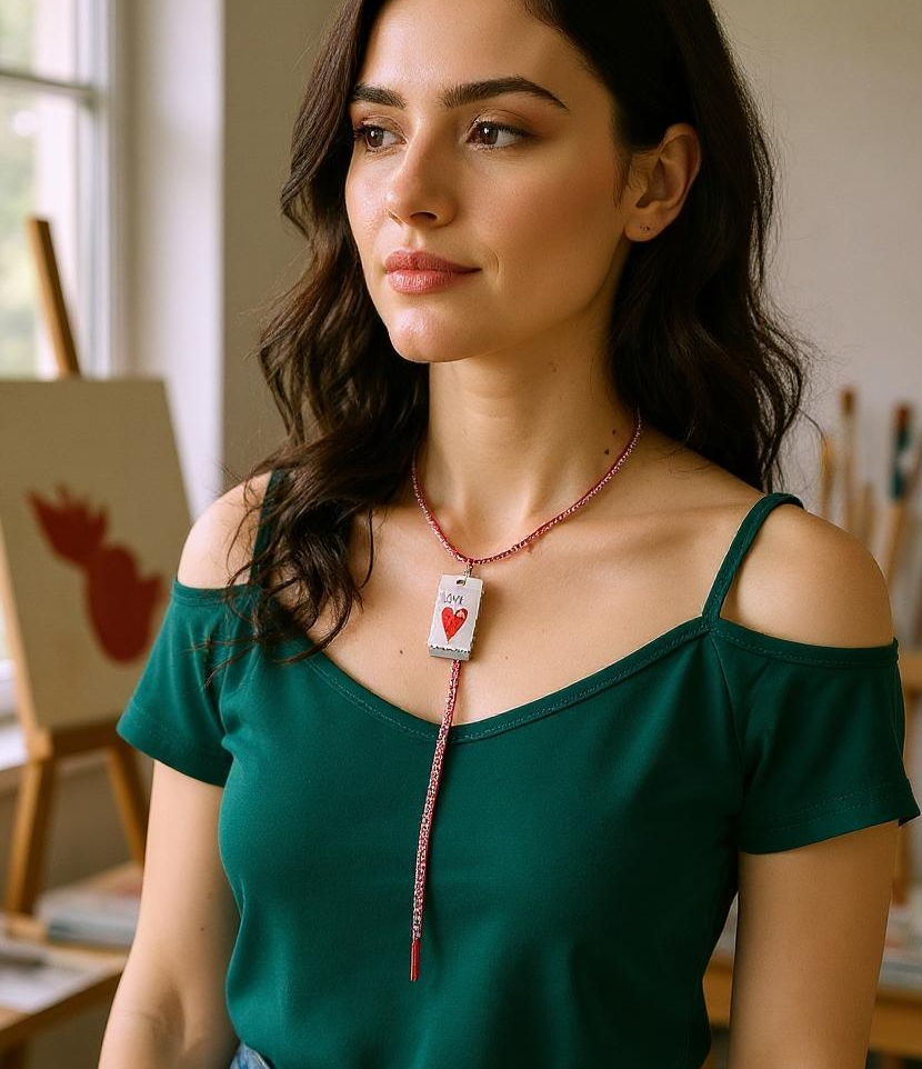 Wear what matters. The 'Love' necklace pairs a bold centre with a rich colourful setting- crafted to symbolise connection, tenderness, and everyday romance.